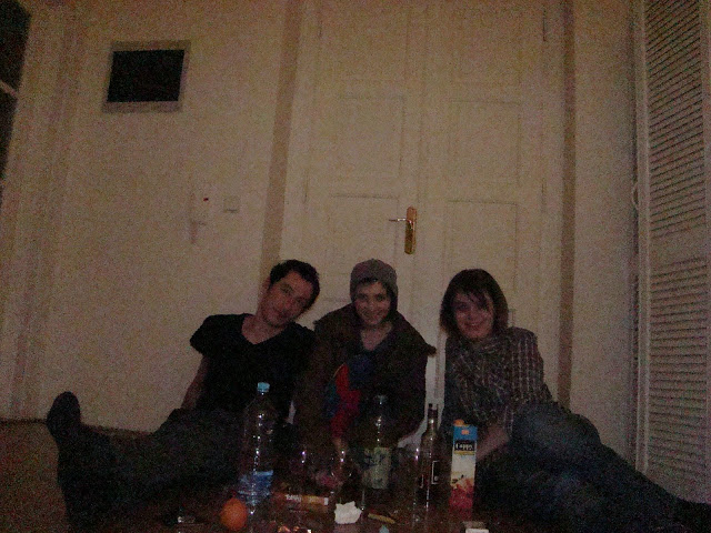 Ar mai fi de notat revelionul de la Praga. Excursia a fost minunata. 10 oameni, un apartament, Praga de sarbatoare. Revelionul in sine n-a fost cine stie ce. Cel putin prima parte, cea in care am fost intr-un bar anost, cu bautura proasta si scumpa. A doua parte, insa, a fost foarte interesanta. Am ramas cu Radu si cu Mada in holul apartamentului imens inchiriat. Restul oamenilor dormeau, iar noi petreceam in continuare, pe parchet, cu restul de bautura ramasa si cu o scrumiera improvizata din dopul de la cada. De aici am si o dovada. O vedeti mai jos.